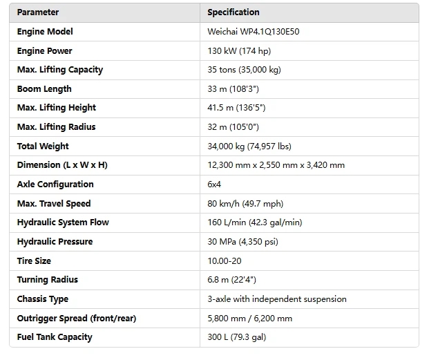 The XCMG XCT35U Truck Crane is powered by a high-performance engine designed to deliver reliable power and fuel efficiency, ensuring consistent operation under demanding conditions. The robust chassis and advanced stability system provide secure footing during lifts, enhancing safety and performance on-site. An integrated monitoring system offers real-time feedback, ensuring operators can maintain safe and effective control at all times.