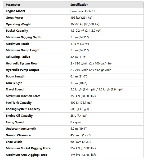 The Sany SY365H Hydraulic Excavator is a robust and powerful machine built for demanding construction, mining, and earthmoving tasks. Powered by the Cummins QSB6.7-C engine, it delivers 195 kW (261 hp) of gross power, providing the strength required for heavy-duty operations while maintaining fuel efficiency.