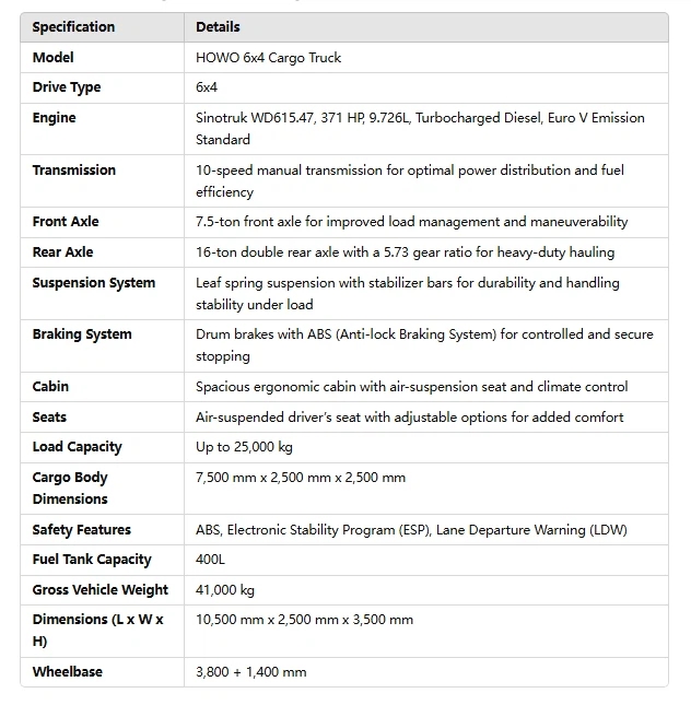 Equipped with a 6-speed manual transmission, the truck ensures smooth and fuel-efficient shifting. The 4X2 drive configuration provides reliable traction and handling, making it ideal for short-to-medium hauls across various road conditions. Its robust leaf spring suspension enhances stability and load management, ensuring a steady and comfortable ride even on challenging terrain.